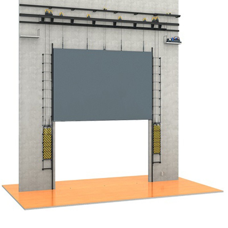 ● 커튼바디는 방화, 난연성 소재를 사용한 철구조물 프레임으로 수평 및 수직방향의 힘을 견딜 수 있습니다.철판은 무대에 난연성 페인트로 칠해져 있습니다.