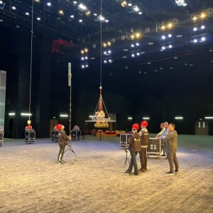 Олон давхаргат ороомгийн өргөгч кран нь үндсэн шатны дээд хэсэгт байрладаг бөгөөд онцгойтайзны гэрэл эсвэл тайзны чимэглэлийг цахилгаан өргөх төхөөрөмжид зориулагдсан.Дээд босоокабель хүлээн авах төхөөрөмж болон хэвтээ кабель холбох төхөөрөмжийг дүүжлүүр болонтайзны гэрэл болон холбогдох тоног төхөөрөмжийг холбох.Түдгэлзүүлэгч нь саваа бүтэц, өргөх систем, хяналтын системээс бүрдэнэ.