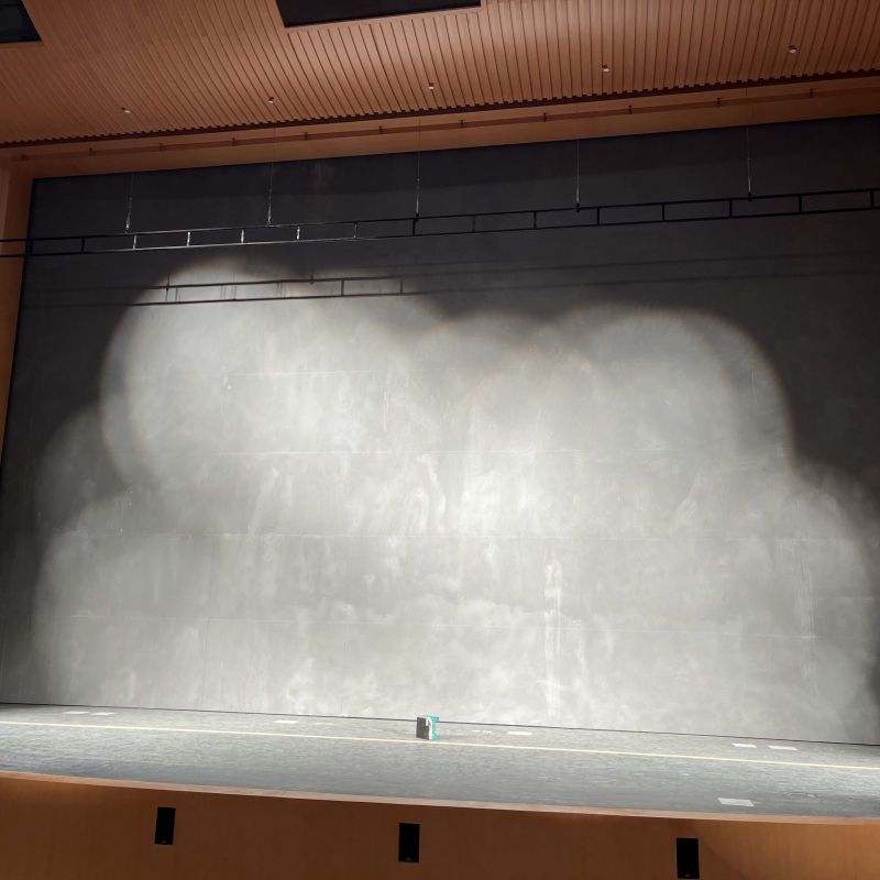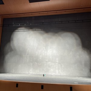 A cortina corta-fogo está localizada entre o auditório e o palco.Sua função é vedar a entrada da recepção e isolar a vista.